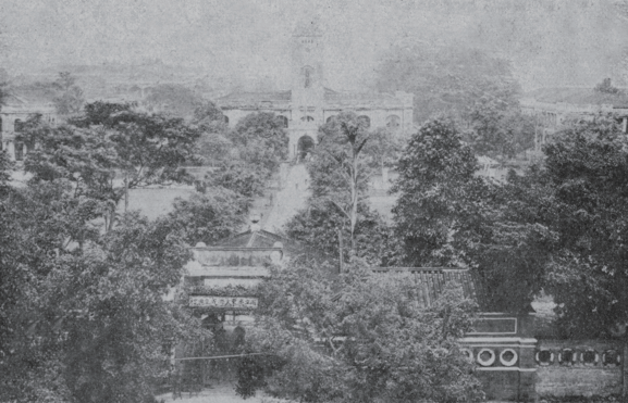 成立典礼时拍摄的国立广东大学校园,校门悬挂“国立广东大学成立典礼”横幅。(来源:中山大学博物馆公众号)