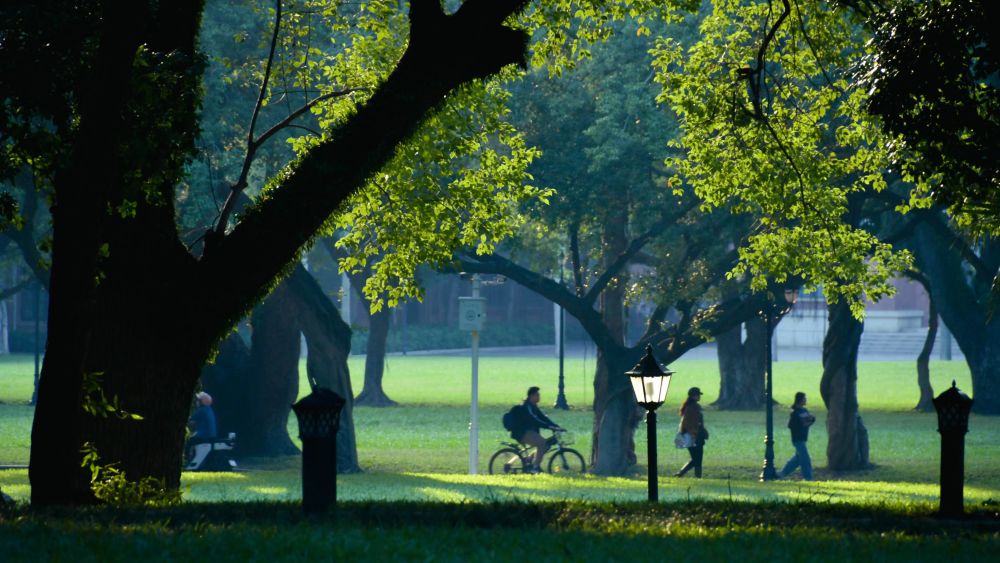 从中山大学广州校区南校园的南校门进入,沿着绿荫下的中轴线一路北行,一座红砖绿瓦的小礼堂映入眼帘,这是中山大学标志性的建筑——怀士堂。
