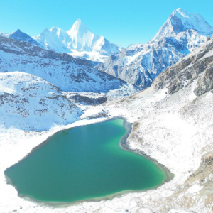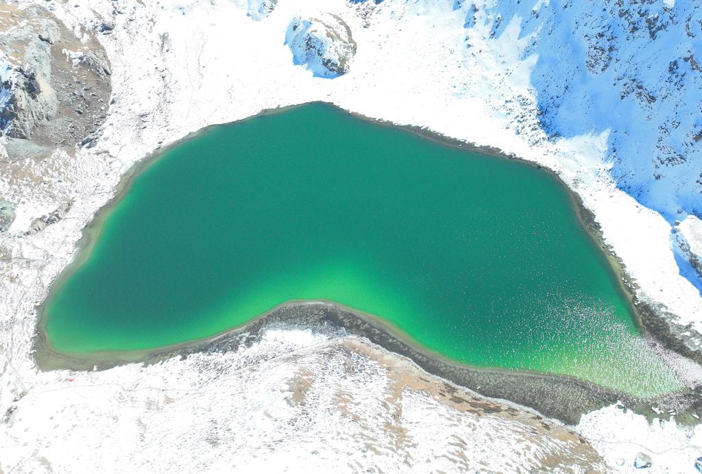 初冬时节,四川省甘孜藏族自治州稻城亚丁景区的“牛奶海”呈现出清澈的蓝色,湖水四周被洁白的雪山和冰川环绕,宁静而壮美,吸引各地游客前来打卡拍照。