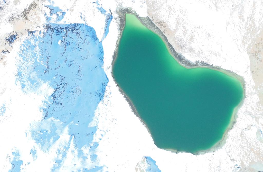 ↑2024年11月12日在四川省甘孜藏族自治州稻城亚丁景区拍摄的“牛奶海”。(无人机照片)CICPHOTO/王建中 摄