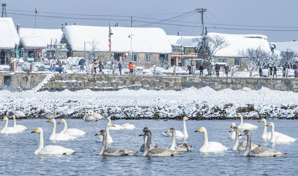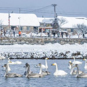 东部沿海,烟墩角村所在的山东省威海市荣成市,是亚洲最大的天鹅越冬栖息地。以石为墙、海草为顶,海滨村民与海洋环境互动共生,烟墩角村天鹅、海草房等自然文化资源与乡村旅游深度融合发展,定格人与自然和谐共生美好画面。
