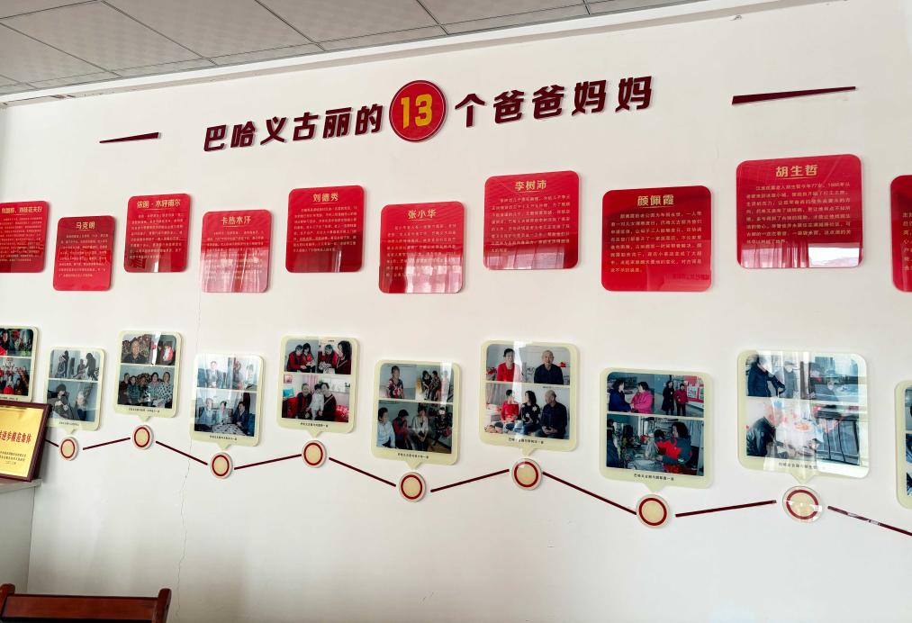 工作室墙面上“巴哈义古丽的13个爸爸妈妈”专栏。新华社记者 刘雅萱 摄