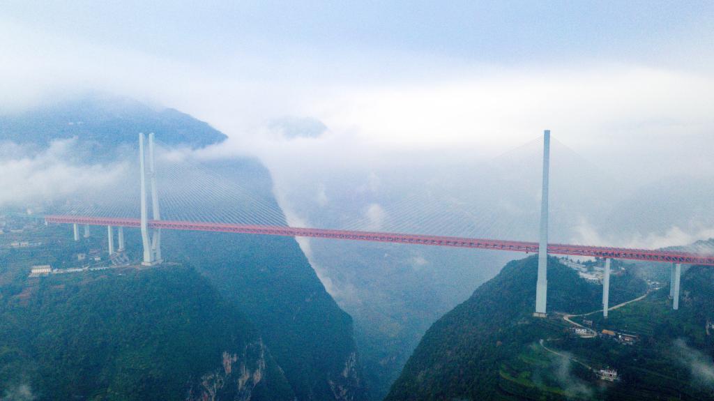 穿越中国新坐标·瞧!贵州的桥!丨世界最高桥——杭瑞高速北盘江大桥-新华网
