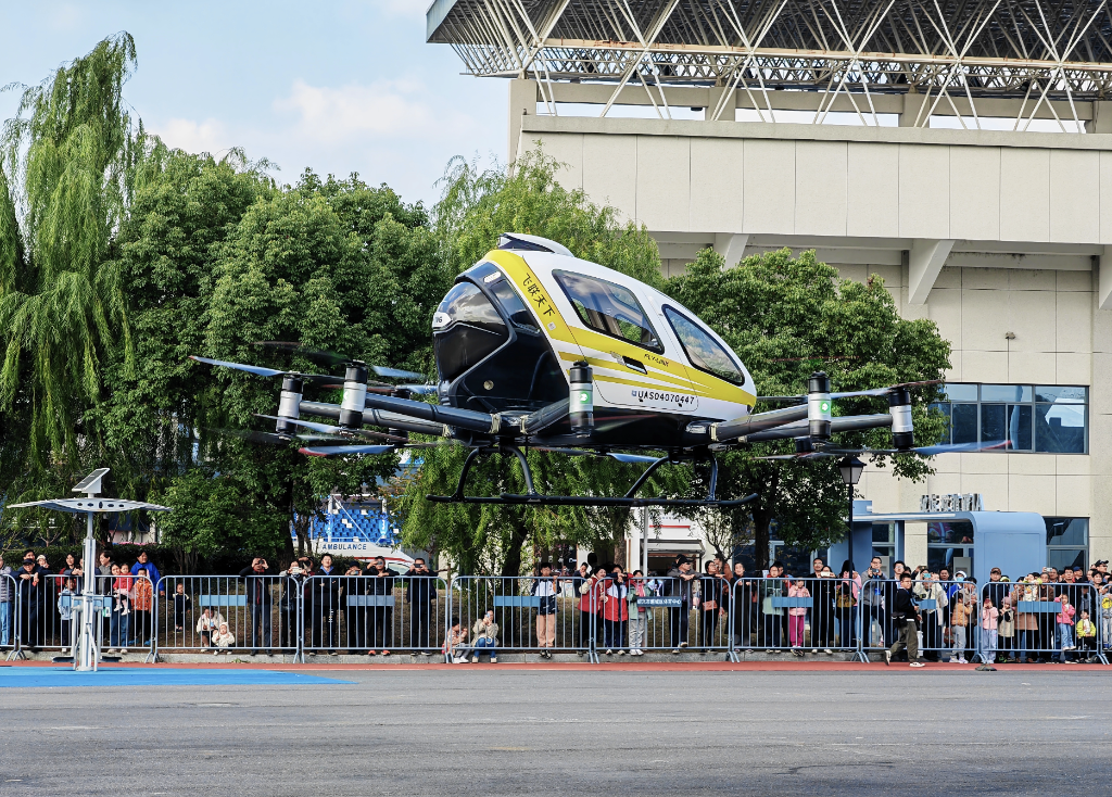 正在进行演示飞行的电动垂直起降飞机。新华社记者王聿昊 摄