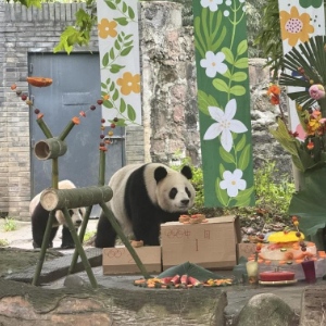 被捆扎成“大蛋糕”造型的新鲜竹笋、水果拼盘……今年8月,在中国大熊猫保护研究中心都江堰基地,年满33岁的老龄大熊猫“白云”享用到中心工作人员精心准备的生日美食。