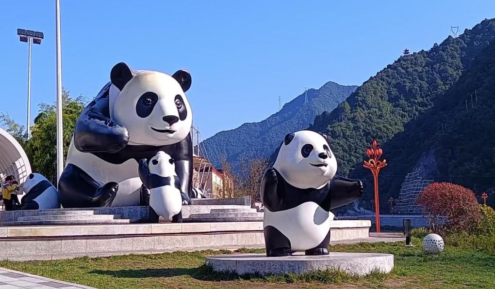 佛坪县街头的大熊猫雕塑。(吴彦峰 摄)