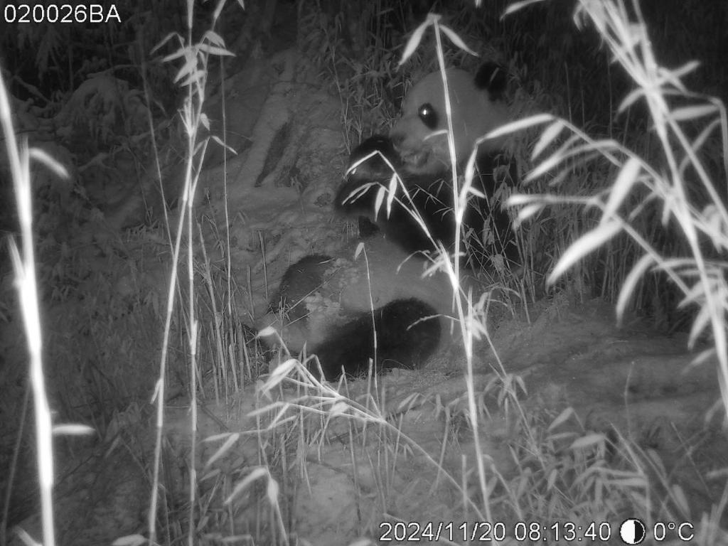 红外相机拍摄到的野生大熊猫活动画面。(大熊猫国家公园白水江分局供图)