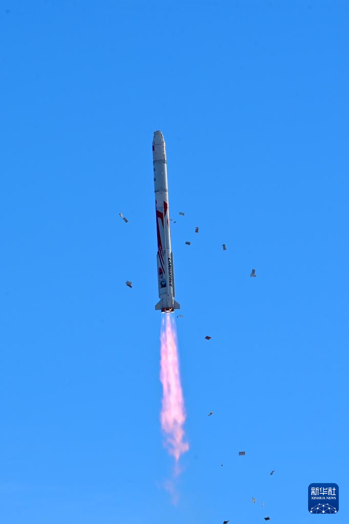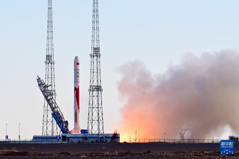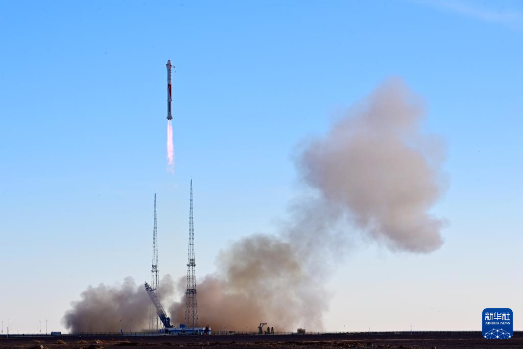 11月27日10时00分,朱雀二号改进型遥一运载火箭在东风商业航天创新试验区发射升空,将搭载的光传01、02试验星顺利送入预定轨道,飞行试验任务获得圆满成功。新华社发(汪江波 摄)