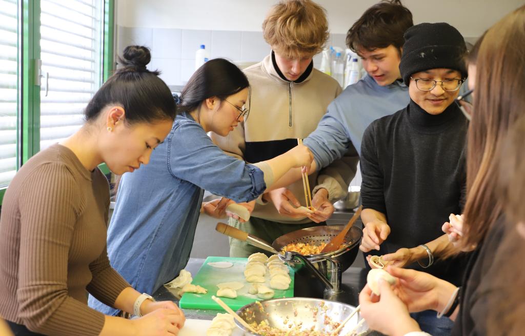 2022年11月17日,在斯洛文尼亚采列市,孔子课堂中国佳肴工作坊的师生一起包饺子。斯洛文尼亚卢布尔雅那大学孔子学院下设的采列孔子课堂当天在采列举行揭牌仪式。新华社发(罗比·瓦伦契奇摄)