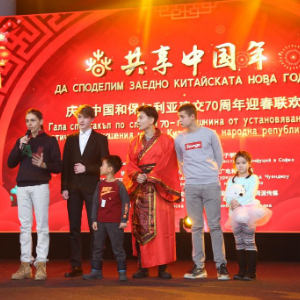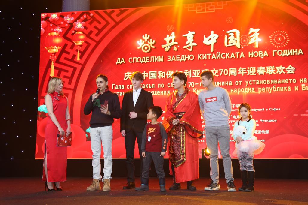 2019年1月26日,在保加利亚索非亚,当地学生用刚学会的宁波方言向大家问候“新年好”。当日,500余名中保各界人士在索非亚举行联欢会,庆祝中保建交70周年和即将到来的中国春节。新华社记者战小漪摄