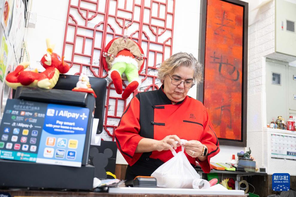 土生葡人马安娜准备客人的外卖(12月3日摄)。新华社发(张金加摄)