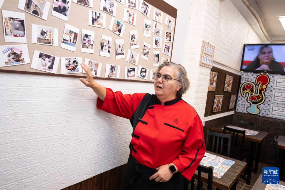 土生葡人马安娜介绍她的宠物猫(12月3日摄)。新华社发(张金加摄)