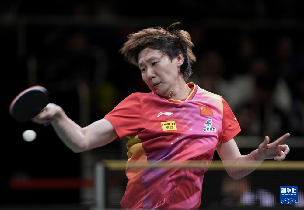 12月8日,中国队选手王曼昱在女单比赛中回球。最终,她3比0战胜韩国队选手金娜英。新华社记者 江宏景 摄