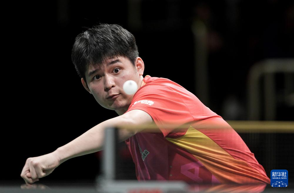 12月8日,中国队选手林诗栋在男单比赛中。最终,他3比0战胜韩国队选手吴晙诚。新华社记者 江宏景 摄