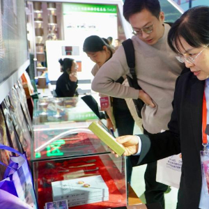 12月7日,在长春健博会的现场,参会嘉宾在了解人参相关产品的情况。新华社记者 孙逸轩 摄