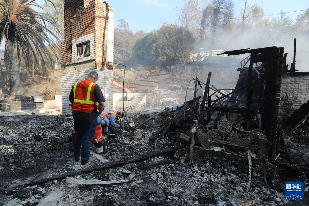 12月10日,燃气公司工作人员在美国加利福尼亚州洛杉矶县马里布一处过火区域工作。新华社发(邱晨 摄)