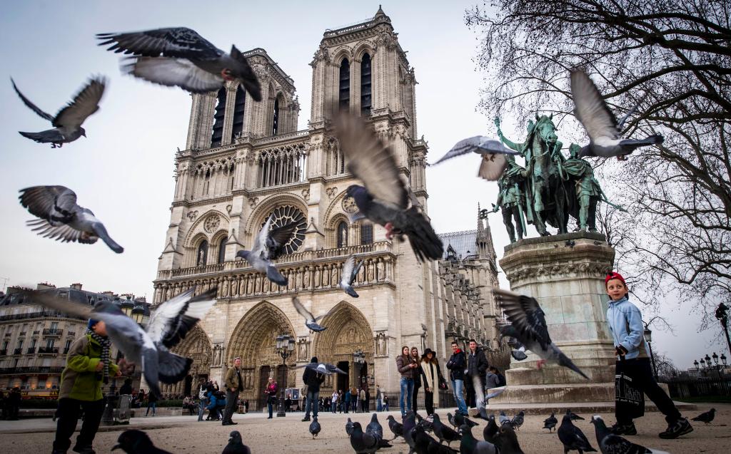 2015年3月13日,游客在巴黎圣母院参观游览。新华社记者 陈晓伟 摄