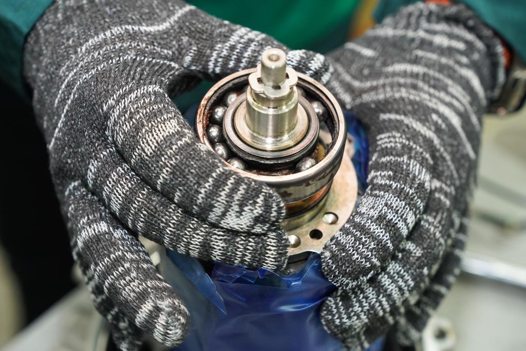 赵飞在修理新能源汽车变速器轴承。