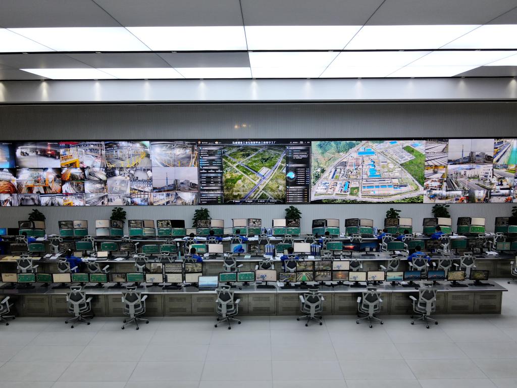 在位于湖北黄石新港(物流)工业园区,中色大冶弘盛铜业40万吨高纯阴极铜清洁生产项目内,集控中心大屏上,工人们远程操控就可实现炼铜。