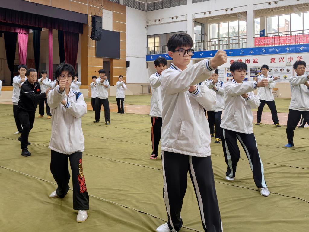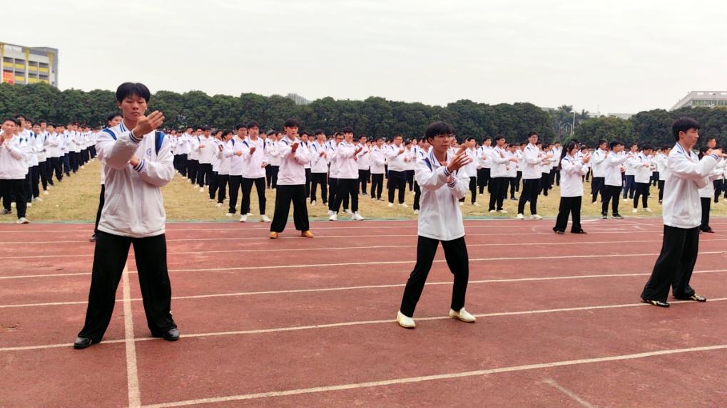 高二学生冼文轩说:“认真做完一套拳操后会大汗淋漓,坚持下来就有强身健体的效果,还可以磨砺性格,发扬中国武术的精神。”