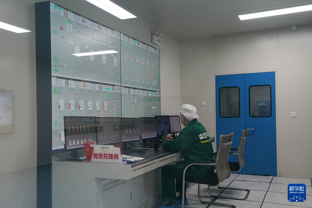 12月21日,在广汉市迈德乐食品有限公司味控智造车间,工作人员通过数字平台了解生产线设备运行情况。新华社记者 胥冰洁 摄