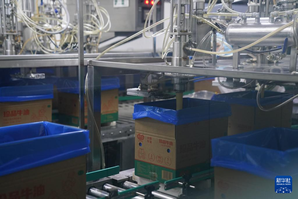 12月21日在四川张兵兵生物科技股份有限公司生产线上拍摄的灌装牛油。新华社记者 胥冰洁 摄