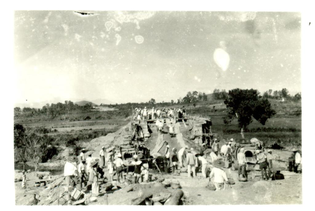 70年前,筑路军民在中部山区施工。