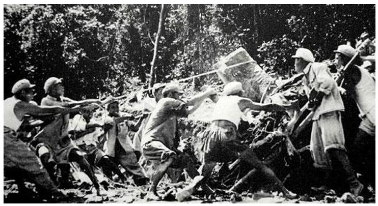 海南岛上10万民工翻山越岭汇入筑路“铁军”