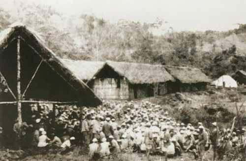 筑路军民在黎族村寨。