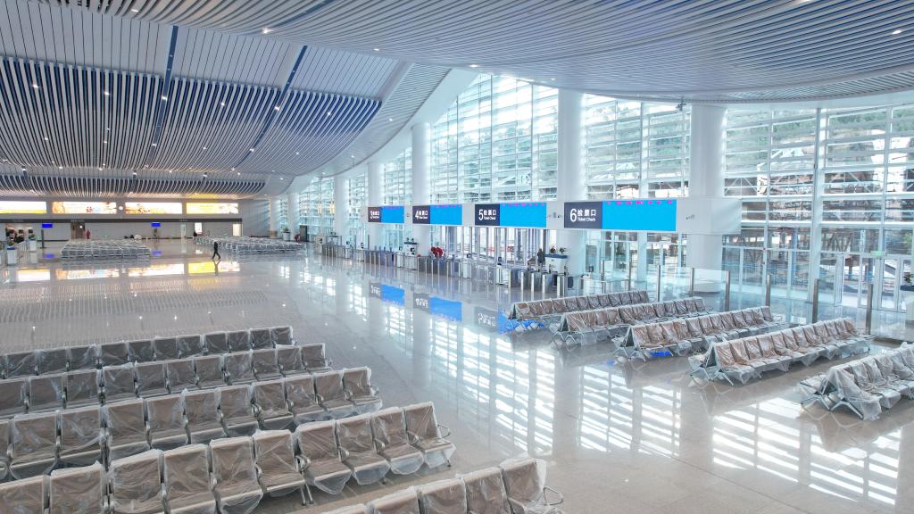 这是12月25日拍摄的新建大理火车站站房内的候车大厅。(昆明铁路局供图)