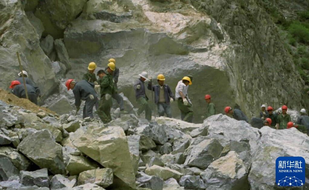 筑路战士在怒江两岸的悬崖陡壁上辟山筑路。新华社发