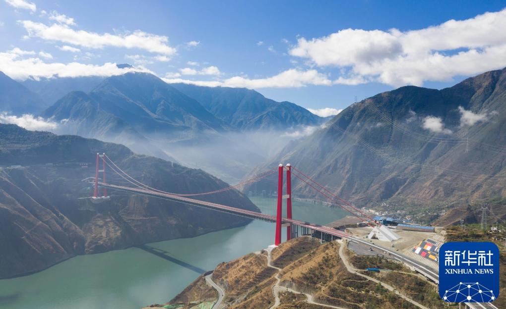 2019年10月16日拍摄的雅康高速泸定大渡河大桥(无人机照片)。该桥2018年底建成通车。新华社记者 江宏景 摄
