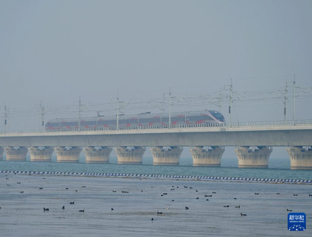 12月26日,列车驶过沪苏湖高铁元荡湖段。新华社记者 邢广利 摄