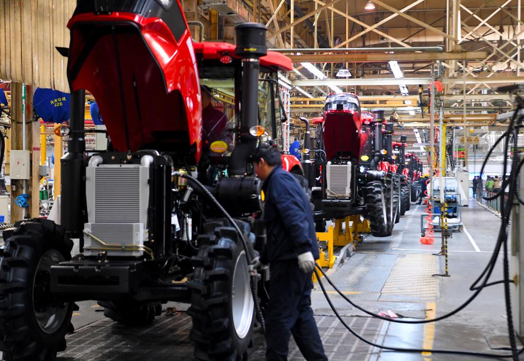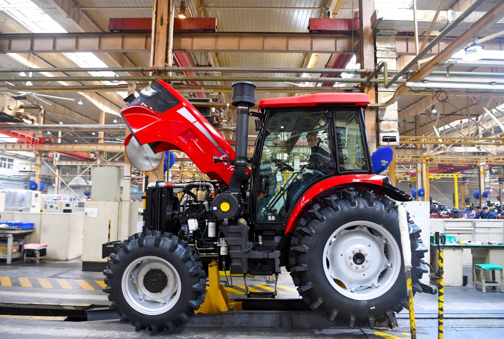 新华社郑州12月28日电(记者孙好 马意翀)12月27日上午,记者走进位于河南洛阳的中国一拖集团有限公司(下称中国一拖)。天气虽寒冷,但在生产车间内,却是一派火热的景象。工人们忙着对整机底盘上线、液压系统组装、驾驶室安装……不到3分钟,就有一台拖拉机从生产线开出来。