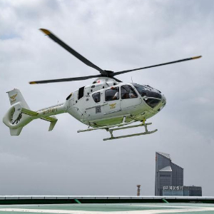 东部通航的直升机准备降落在深圳市中心的大中华直升机场(2021年3月18日摄)。新华社记者 毛思倩 摄