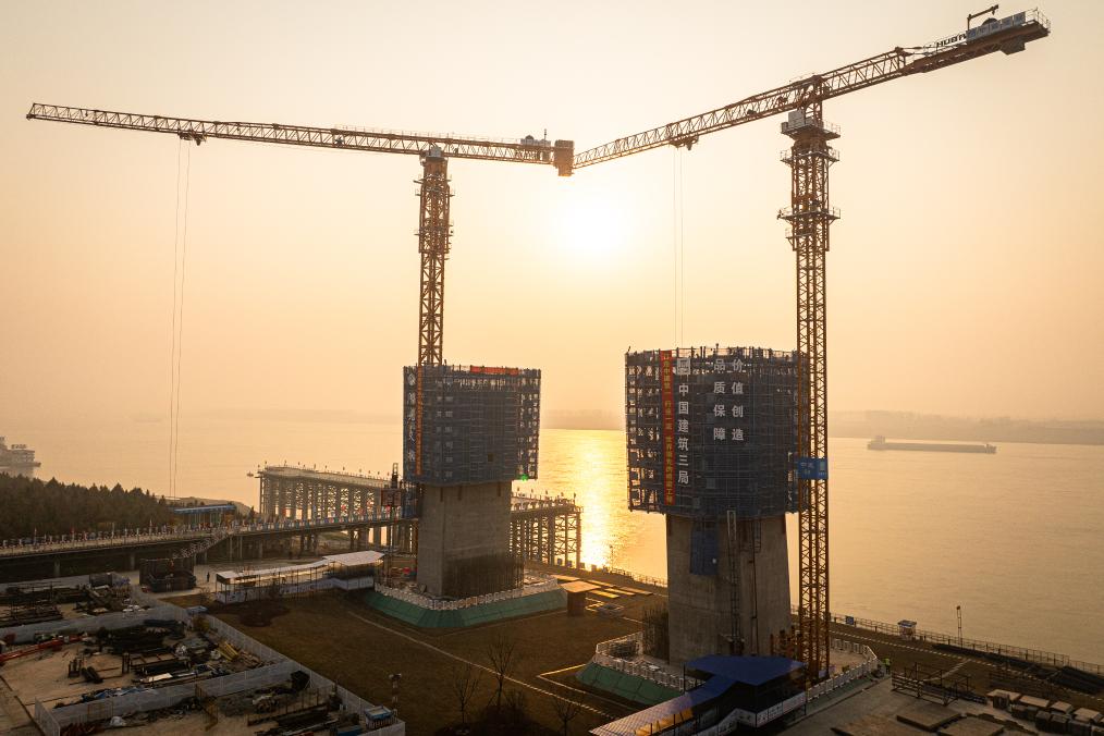 此前,在湖北宜昌伍家岗长江大桥的建设中,中建三局于2018年使用了自主研制的国内首个“整体式自适应智能顶升桥塔平台”(简称“造塔机”)。这是我国首次将智能顶升平台系统从超高层建筑拓展至大型桥梁领域,实现了我国大型桥梁建造核心技术装备的新突破。