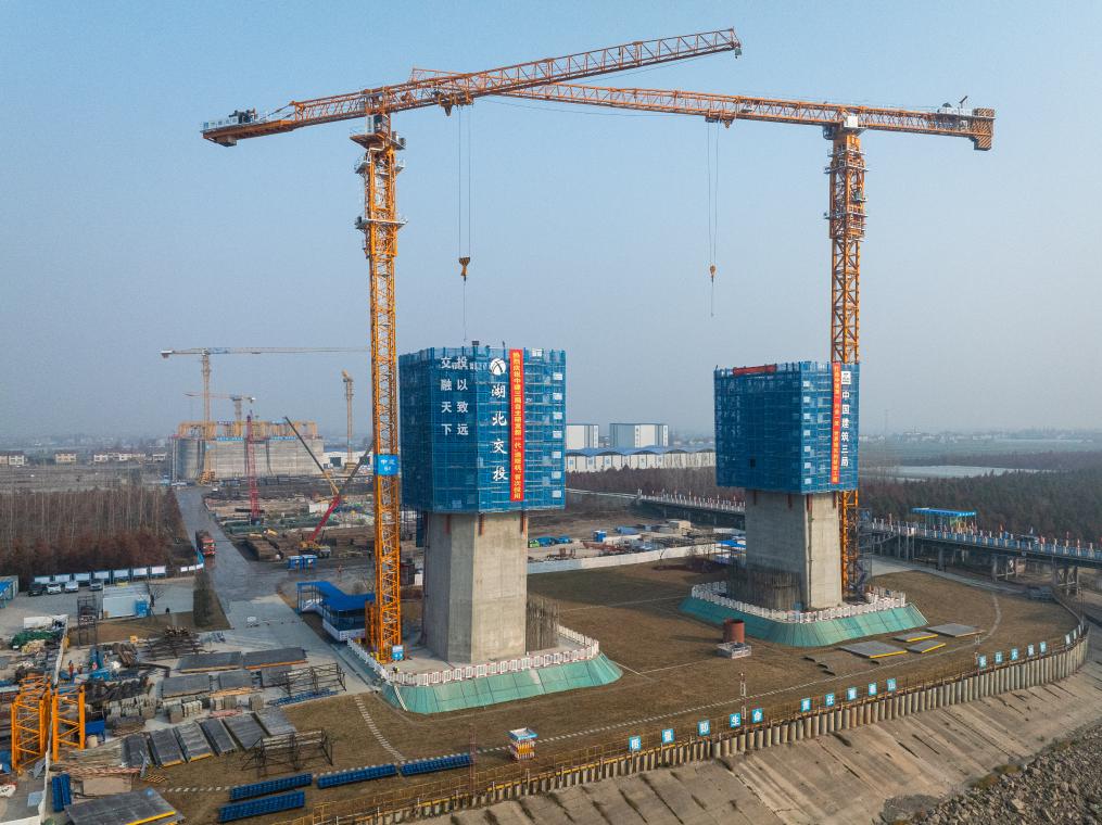 新华社武汉1月3日电(记者梁建强、熊琦)迎着朝阳,湖北荆州李埠长江公铁大桥建设现场一片忙碌景象。3日,随着项目经理何承林在数智建造控制室下达指令,新一代轻型智能“造塔机”缓缓升至30余米高空,首次顶升顺利完成。这标志着大桥北岸索塔即将进入快速“拔节生长”阶段。