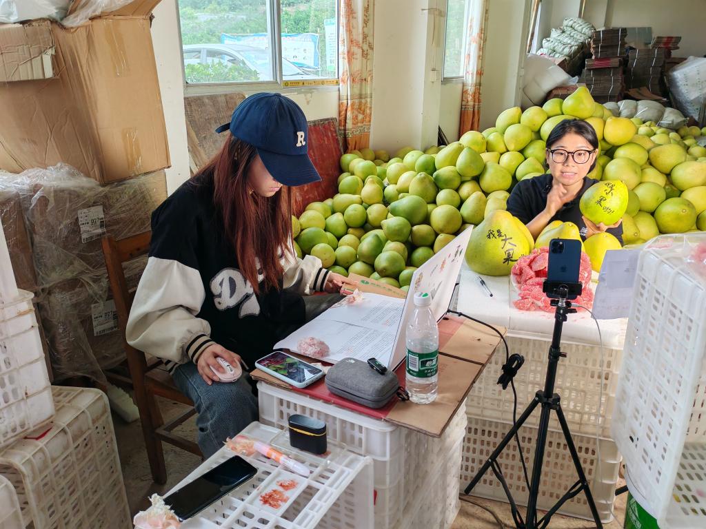 四川省资阳市雁江区石岭镇土桥村,年轻人在电商助农(2024年11月摄)。新华社发