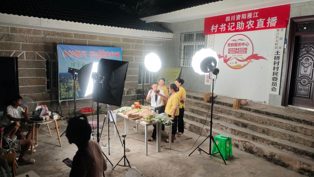 去年8月,土桥村成为雁江区“乡村数字电商直播示范基地”。村里还把妇女们组织起来,组成“村花”直播队。
