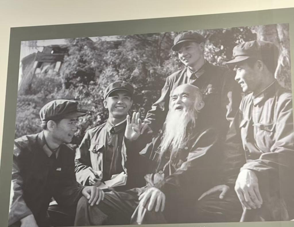 照片中的老红军叫何木林,1935年在青杠坡战斗中负伤获救后留在土城镇生活。为了不暴露自己浓重的江西口音,保护救他的村民,他一直佯装聋哑人。新中国成立后,何木林才开口说话。半个多世纪里,何家四代人如传承接力一般,在这片热血的土地上讲述红军的故事。