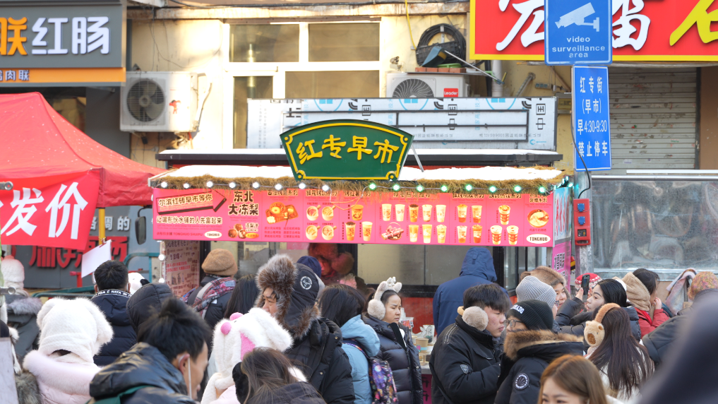 寒冬腊月里,清晨七八点钟的哈尔滨,户外气温接近零下30摄氏度,红专早市却上演着“冰火两重天”。
