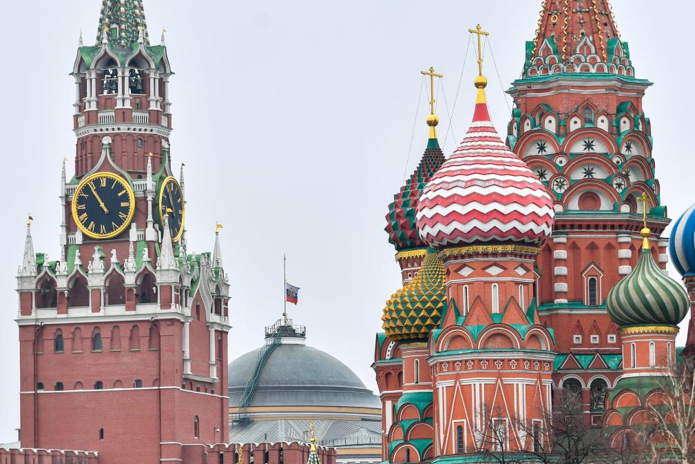 这是2024年3月24日在俄罗斯莫斯科拍摄的降半旗的克里姆林宫。