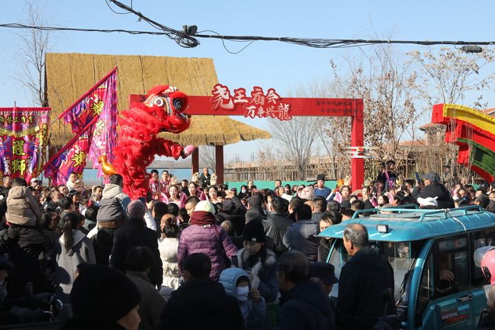 随着礼官高声念读《尧王狮舞赋》,喧天锣鼓响起,雄狮欢快起舞,精壮汉子扭动肢体,演绎着社火故事,久负盛名的山西长治尧王文化庙会在2024年年底热闹开市。