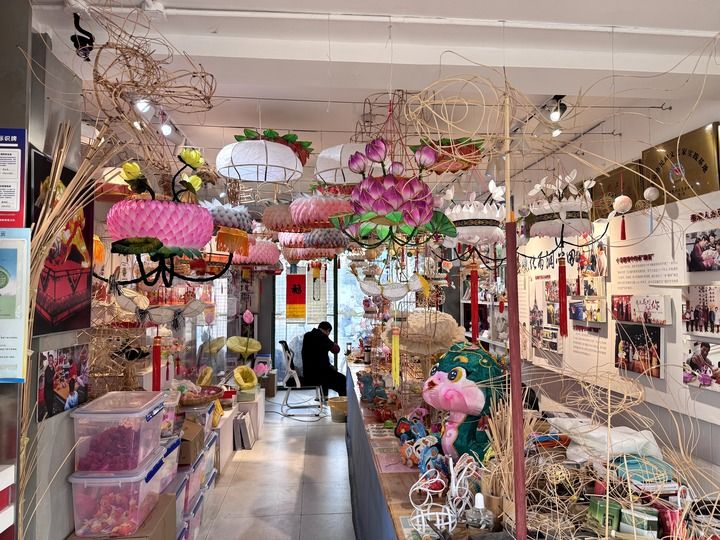 每年11月当地气候变冷时,制作花灯就迎来旺季。近年来,花灯体积越来越大,造型和亮度越来越复杂,声、光、电、动兼具,需要在制作上融入了很多新技艺,材质也拓展到纸、绸、绢、纱、塑料瓶、瓷器、亚克力……但总的来说还是“手工活”,靠的还是传统技艺。