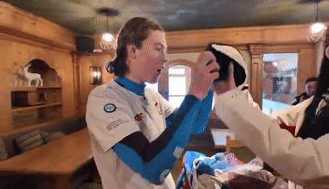 得到帽子的佩斯利向她的队友们“炫耀”起来,一名队友打趣说:“我好羡慕你。”