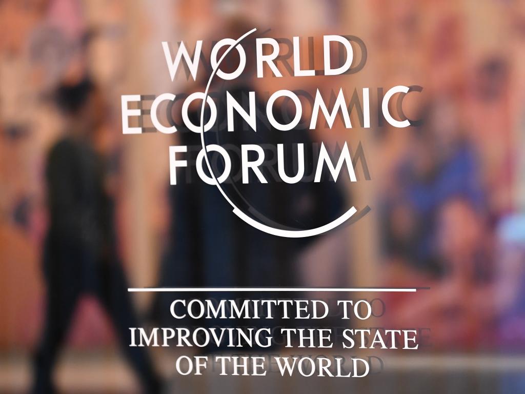 这是1月20日在瑞士达沃斯拍摄的世界经济论坛标识。新华社记者连漪摄
