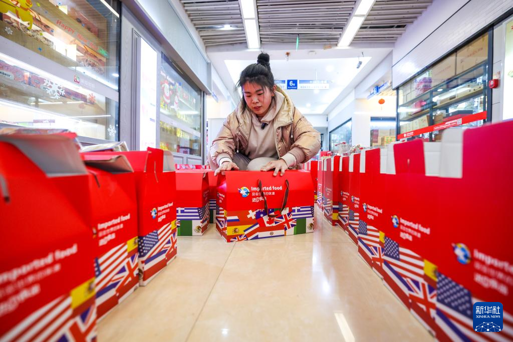 顾客在义乌国际商贸城五区的一家进口食品商店内挑选商品(1月13日摄)。新华社记者 江汉 摄
