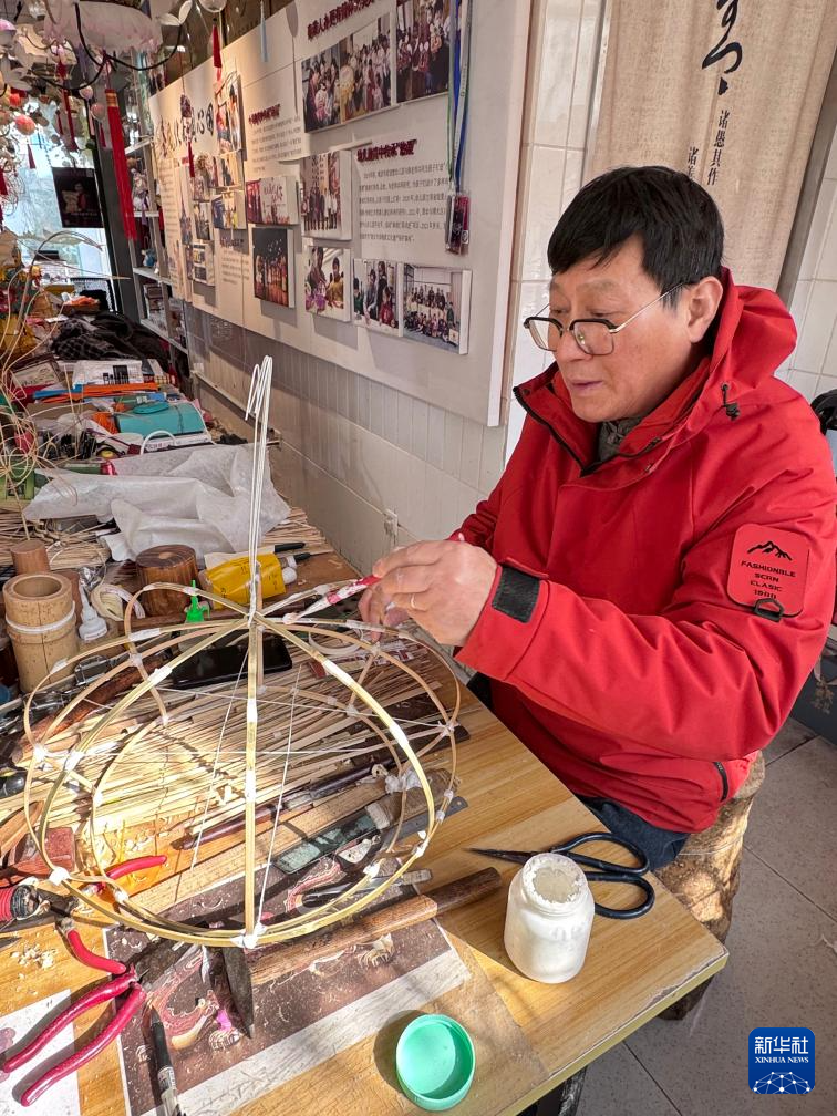 顾业亮在扎制一盏传统荷花灯(2024年12月19日摄)。新华社记者 蒋芳 摄