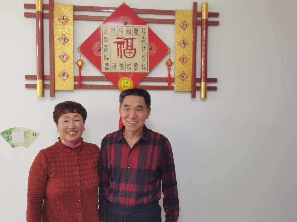 矫学林(右)和王训华在新家合影。新华社记者王凯 摄