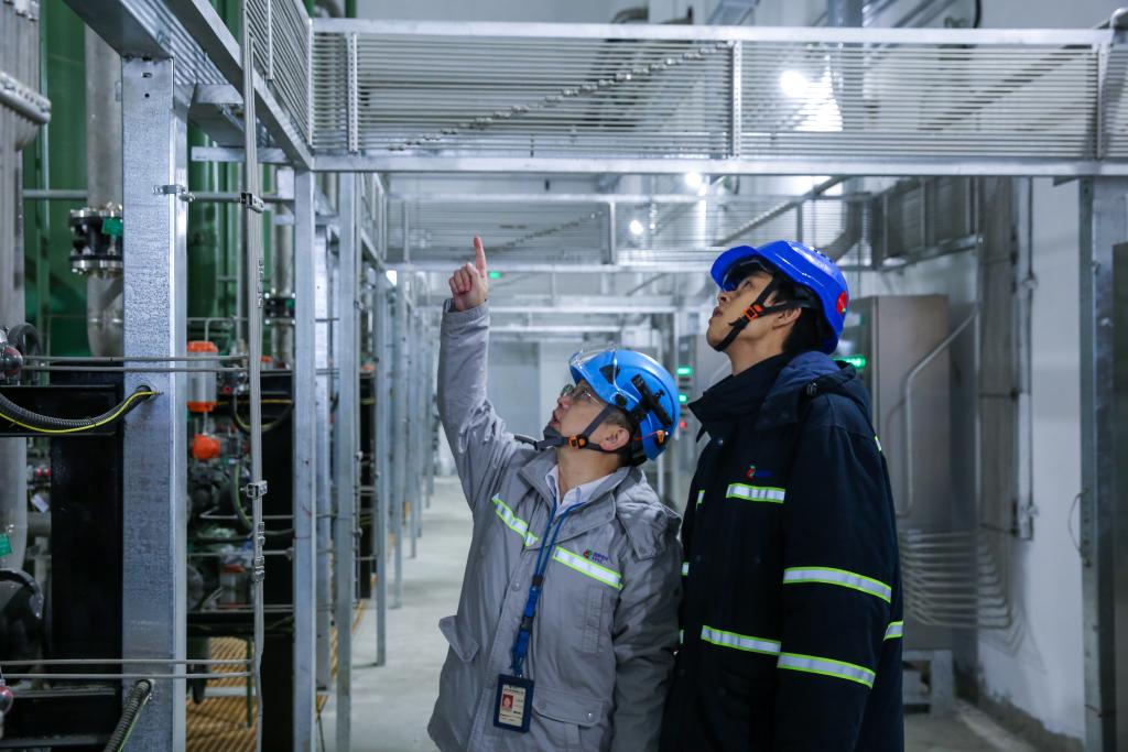 “暖核一号”核能供热运维工程师正在现场巡检。(采访对象供图)